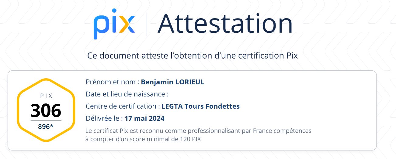 Services Informatiques aux Organisations option Solutions Logicielles et Applications Métiers (SLAM) et Maths approfondies réalisé en alternance.